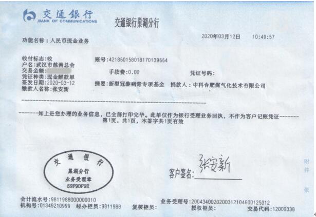 中合氣化:踐行初心擔(dān)使命 愛心捐款抗疫情
